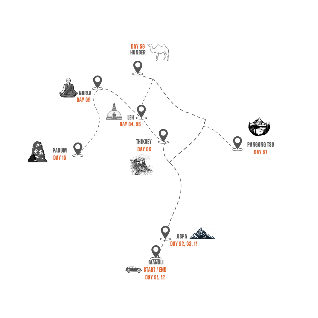 They say adventure begins where the road ends, but in Ladakh, the road is the adventure. Over 13 adrenaline-packed days, Outback Escapes takes you on a journey through a land where the mountains touch the sky and every turn reveals a landscape straight out of a dream
