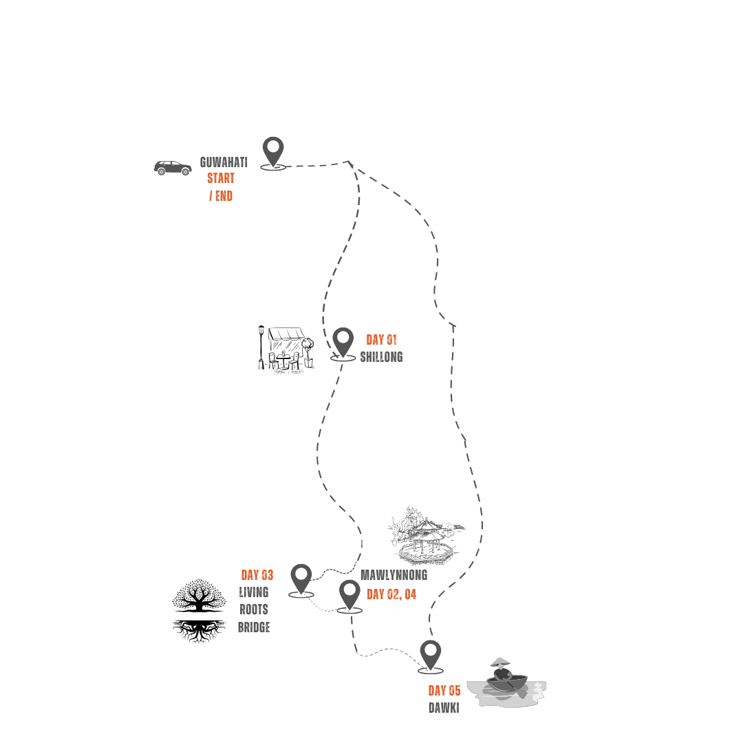 Get ready for a road trip through the heart of Meghalaya, the “Abode of Clouds.” Starting in Guwahati, the city’s buzz fades as we hit the open road, windows down, road trip playlist on loop. Our first stop: Shillong, where the crisp mountain air and breathtaking views make you feel like you’ve stepped into the “Scotland of the East,” with just a touch more spice in the air. It’s the perfect place to sip tea at a cozy café and pretend you’re living in a Bollywood movie.