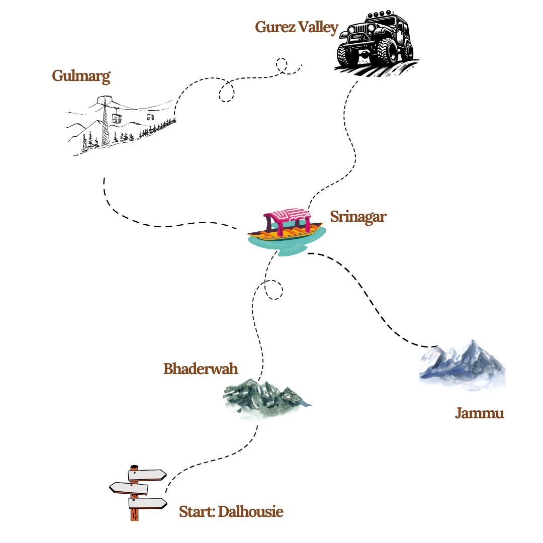 This journey isn’t just about reaching a destination; it’s about fully experiencing the road. We take detours, go off-roading, and immerse ourselves in the rawness of Kashmir’s wilderness— exploring untouched places where every momentfeels like a new adventure.