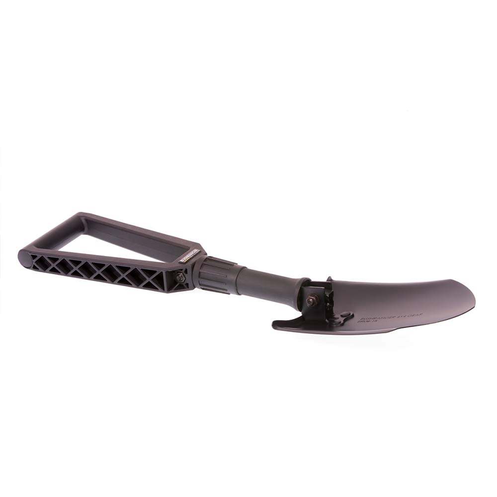 Description: The Bushranger® Tri-Fold Shovel is a compact, durable tool designed for the open road. Featuring a 2mm thick heat-treated steel blade with a pressed radius for added strength, and a moulded nylon handle for comfort and durability.